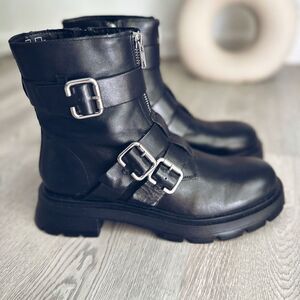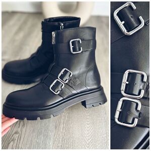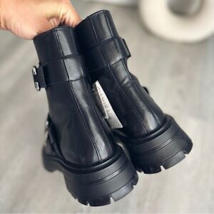 Zara Lug Sole Genuine Leather Boots Buckles New