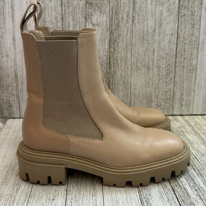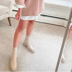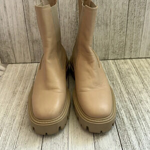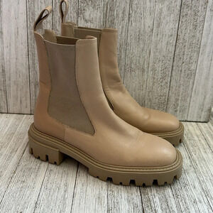 Zara Lug Sole Leather Chelsea Boots Beige SIZE 37