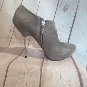 Zara Luxe Gray Suede with Stunning Silver Metal "Needle" Heel Ankle Boots sz.9M