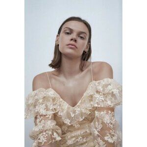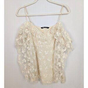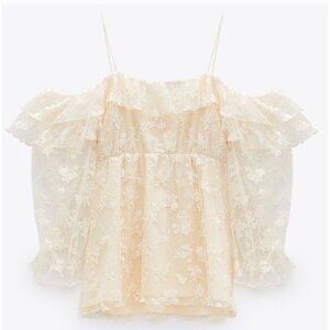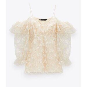 Zara M Floral Lace Embroidered Off The Shoulder Top Fairy Boho Feminine Blouse