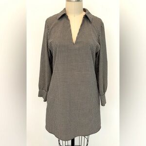 Zara, Size M, New With Tags, Black & Cream Gingham, Pull-Over Style with Split Collar, Bracelet Length Sleeves with Single Gold Button Cuffs, Inseam Pockets, Minimalist Mini Dress. Perfect dress for Fall… dress it up or down, so many possibilities!