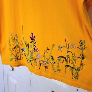 Zara, M | Yellow Oversized Boho T-Shirt With Embroidered Floral Edge