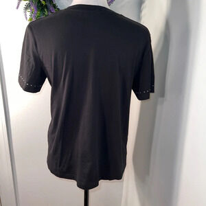 Zara, M, soft black cotton T-shirt studded accents around the collar and sleeves