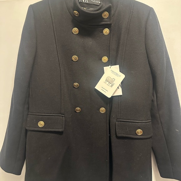 Zara MANTECO Black Coat with Gold Button Detail