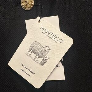 Elegant black coat featuring a gold button. Made with Italian fabric.