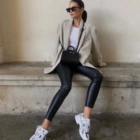 Zara Made in Turkey High Rise Ankle Zippers Black Faux Leather Slim Jeans wmns S