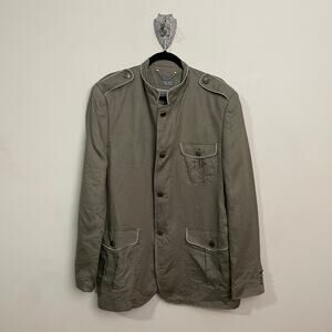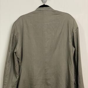 Zara Man 46R utility military blazer jacket olive green white trim linen summer