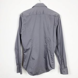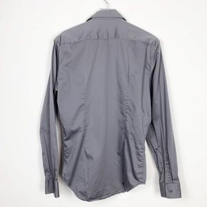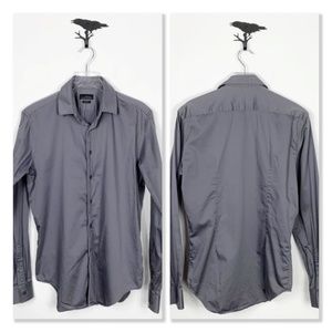 Zara Man Black Label gray slim fit long sleeve button down shirt. Features twist trim down the button placket. 1 button square cuff. Curved hem. In excellent condition.