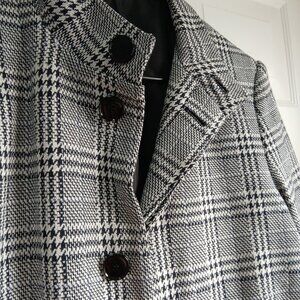 Prince of Whales Check, Black and White Plaid, Single Breasted, Trench Overcoat, Classy, Casual Pea Coat