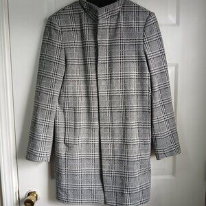 Zara Man Black and White Plaid Mid Length Trench Coat Size Medium