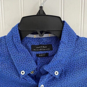 Zara Man Blue Floral Print Edition Slim Fit Long Sleeve Shirt Medium Men’s NEW