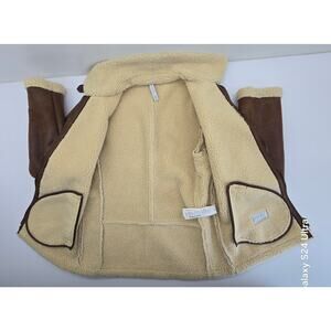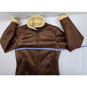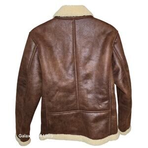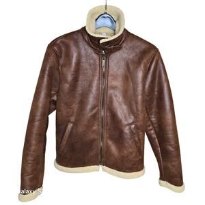 Zara Man Brown Classic Aviator Style Bomber Jacket Shearling Lining Coat Men's M