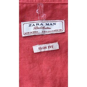 Zara Man printed Coral Short Sleeve Slim Fit Shirt Size Small