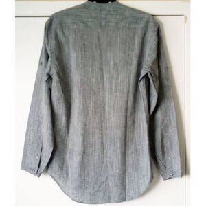 Zara Man Cotton & Linen Slim Fit Button-Up Shirt M Roll-Up Sleeves Gray