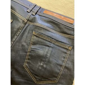 Excellent, Preowned Condition, tight stretch fit, dark wash, tagged size 31”, See Measurements for Custom Fit