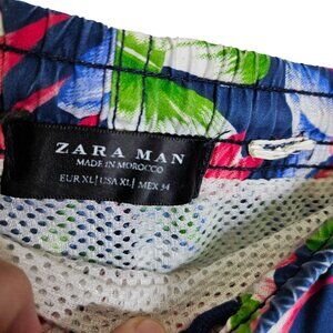Zara Man Floral Print Swim Trunks Navy Multicolor Tropical Mesh Lining XL