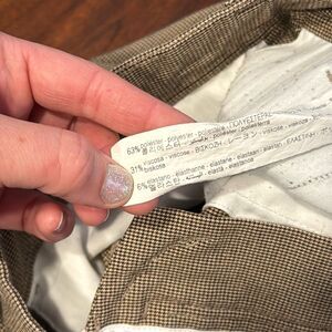 Excellent condition tapered tan and brown houndstooth plaid flat front dress pants from. Zara. Polyester, viscose, and elastane blend.