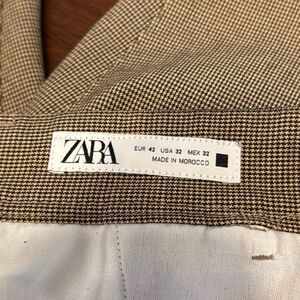 Zara Man Houndstooth Plaid Tan Brown Tapered Dress Pants Men’s US 32