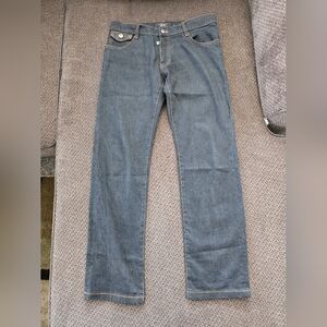 This Zara Man jeans feature a classic straight-leg fit in a size 31 waist and 32 inseam. The light washed black denim fabric is accented with a sport moda logo, zipper, and button closure. With a mid-rise silhouette, this pair of jeans offers a comfortable and easy-care option for all seasons, perfect for a casual yet stylish look.