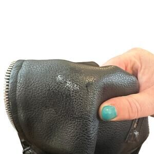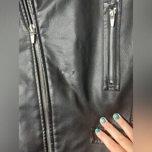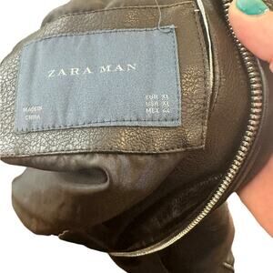 This jacket is an excellent used condition but does have one minor white spot on the front of it that could likely be removed with a leather cleaner. Please see photos for indication of the spot. This is a size XL Zara, leather jacket.