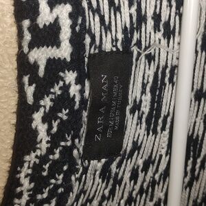 Zara Man Long Line Knit Abstract Aztec Cotton Blend with Pockets Cardigan M. Good pre-owned condition