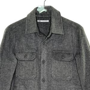 Zara Man M Gray Collared Fleece Overshirt Jacket Shacket Pockets Modern