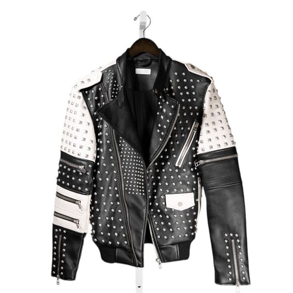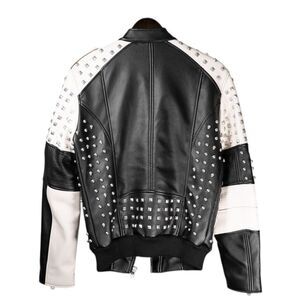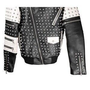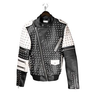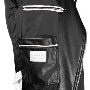 Zara Man Mens Jacket Small Black Faux Leather Studded Motorcycle Biker Bomber