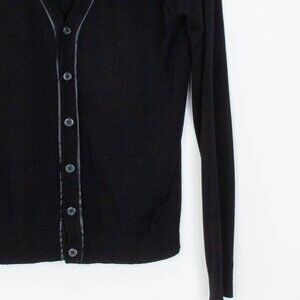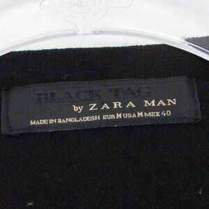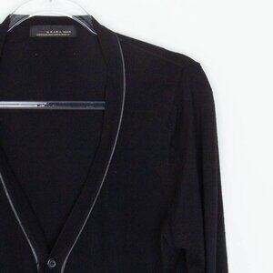 Zara Man Mens Lightweight Cardigan Size M Black Leather Trim Preppy Academia