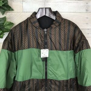 Brown Black Green Reversible Aztec Southwestern Print Bomber Puffer Jacket Coat