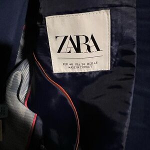 This Zara Man Royal Blue Suit in size 36R/34W is a stylish and sophisticated choice for any formal occasion. The 2-piece suit features a classic and timeless design, perfect for the modern gentleman. This suit is sure to make a statement and elevate any outfit. The royal blue color adds a pop of color to your wardrobe, making it a versatile and eye-catching piece for any man's clothing collection.