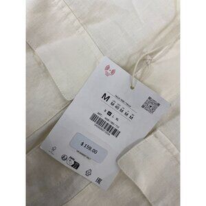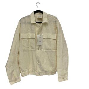 Zara Mens Jacket Medium Ecru Relaxed Fit Linen Button Long Sleeve 4530/083 NWT