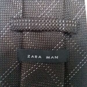 Zara Man Silk Tie Flat Black Subtle Neutral Diamond Pattern