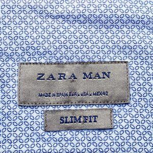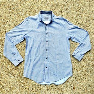 Zara Man Slim Fit Blue Button Down Patterned Long Sleeve Shirt Men’s Size L