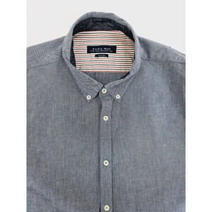 Zara Man Slim Fit Size 2XL Men's Blue Oxford Style Button Down Long Sleeve Shirt