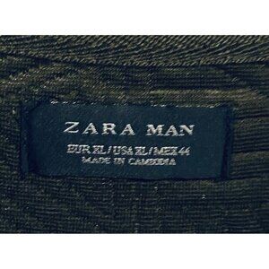 Zara Man Sweatshirt Mens XL Dark Green Geometric Textured Crew Neck Pullover