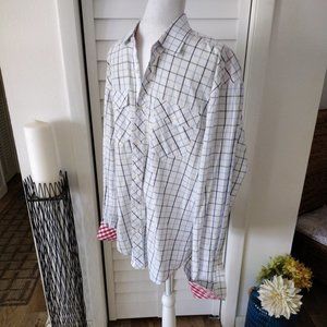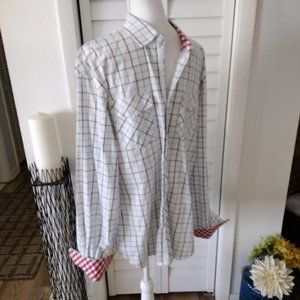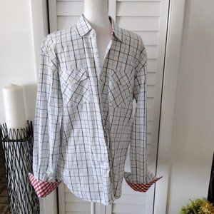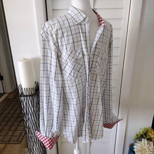 Zara Man Tailor Fit plaid button-down long sleeve with contrast cuffs Sz XL