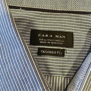 Zara Man Tailored Fit Blue & White Pinstripe Button Front Shirt Size 17