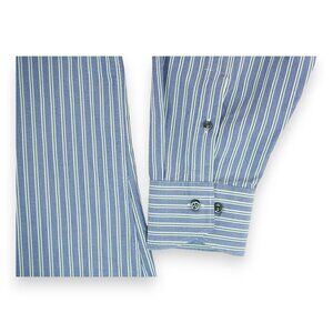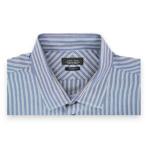 Zara Man Tailored Fit Button Up Shirt Mens 18 Blue White Stripe Long Sleeve