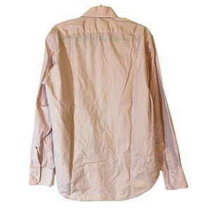 Zara Man US 17 Dress Shirt Mens Button Down Long Sleeve Collar Pink Red Stripe