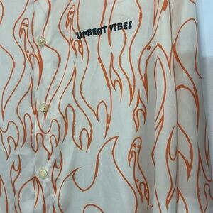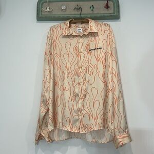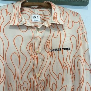 Zara Man Upbeat Vibes Satin Ghost Flame Print Shirt medium us size