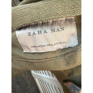 Zara Man XL Reversible Bomber Jacket Olive Green & Multicolor Aztec Pattern Poly