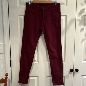 Zara Man brand size 30 “The Basic Collection “ pants. Zipper and button front closure. Pockets. Cotton and spandex. Burgundy. Excellent quality. Excellent condition.