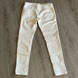 Zara Man white denim US size 31. Biker details at knee. Skinny fit. Zippers under pockets. Button/zip fly. Belt loops. Biker detailing at back waist. Some color transfer has occurred.
