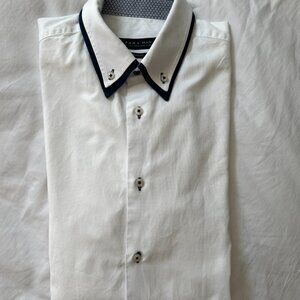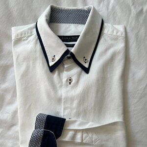 Zara ManTextured White Button Down with Blue Trim Slim Fit L