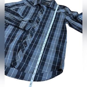 Zara Man plaid button down shirt Navy Grey slim fit size XL
