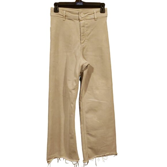 High Waisted, Wide Leg, Culotte, Cropped, Utility, Cargo style, Streetwear, Beige, Off-White, Rigid Denim, 100% Cotton, Viral, Blogger Favorite.
