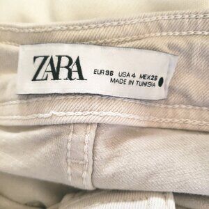 Zara Marine Straight Jeans Cream High Rise Wide Leg Raw Hem Minimalist Pants 4