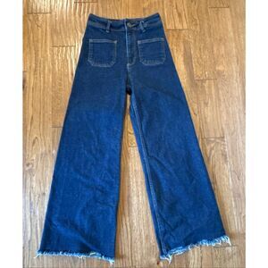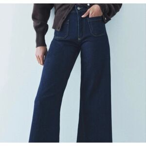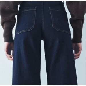 Zara Marine patch pocket dark indigo wash wide leg crop jeans 4