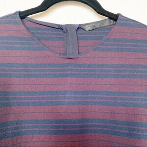 Zara Maroon Navy Stripe Bubble Sleeve Top Size Large