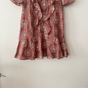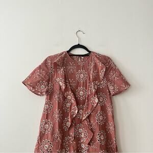 In good preowned condition. Embroidered eyelet and ruffle details. Short sleeves.